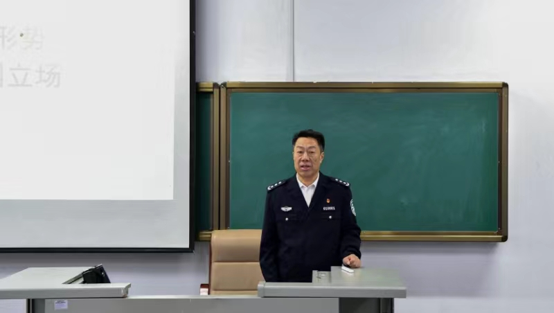游晔书记以“当前国际形势与中国原则立场”为题,从动荡变革的世界、全球瞩目的热点、大国风范的外交等三个方面全面解读了百年未有之大变局下的国际形势和中国外交政策,深刻阐释新征程上,中国外交将紧紧围绕党和国家中心任务,坚定维护国家主权、安全、发展利益,为强国建设、民族复兴伟业营造更有力国际环境、提供更坚实战略支撑。青年是维护世界和平、促进共同发展的重要力量,游晔书记勉励同学们,要坚持胸怀天下,坚定理想信念,强化责任担当,坚定不移把个人使命与国家命运紧密联系在一起,为构建人类命运共同体贡献青年学警力量。
