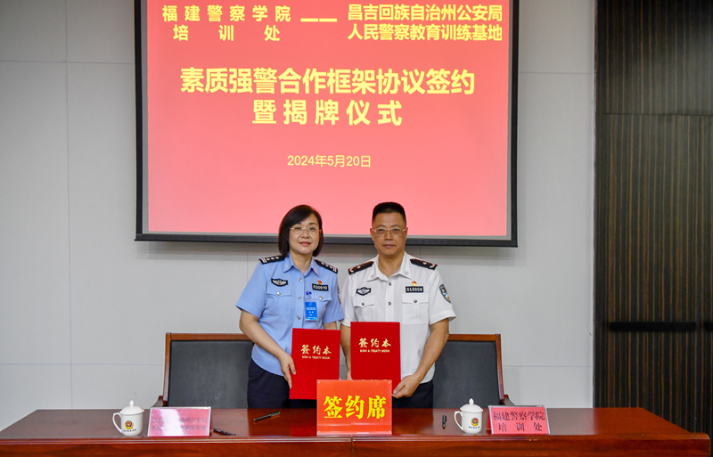 5月20日上午,beat365培训处与昌吉回族自治州公安局人民警察教育训练基地素质强警合作框架协议签约暨揭牌仪式在beat365举行。学院副院长张文东与昌吉州公安局政治部主任刘涛代表双方签署合作协议,共同为“昌吉回族自治州公安局合作院校”揭牌。