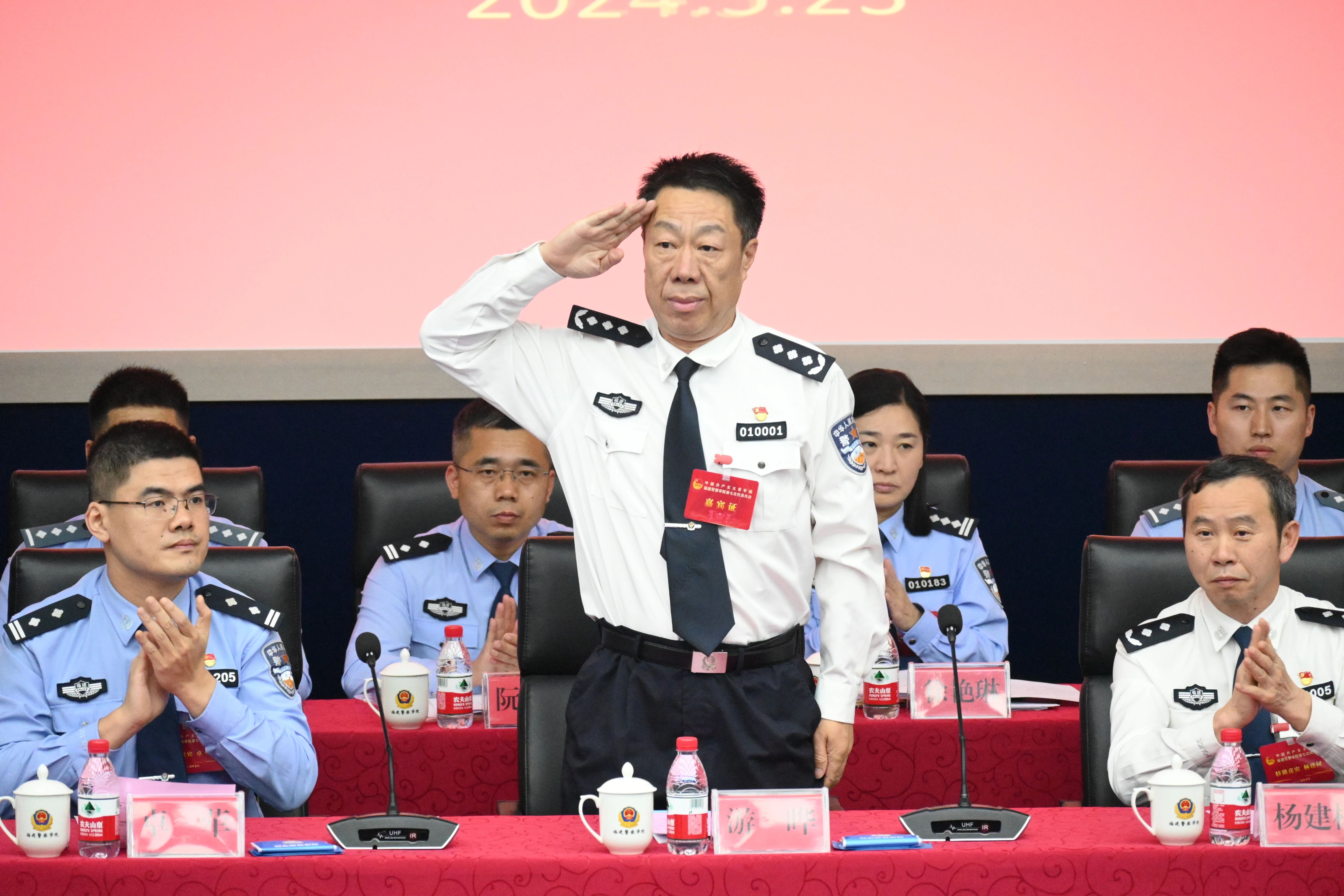 大会现场灯光璀璨、气氛热烈。主席台上方“共青团beat365中文官方网站第七次代表大会”会标格外醒目,团徽熠熠生辉。122名团代会代表身着警服,佩戴党徽、团徽,肩负学院全体共青团员的重托参加大会。
