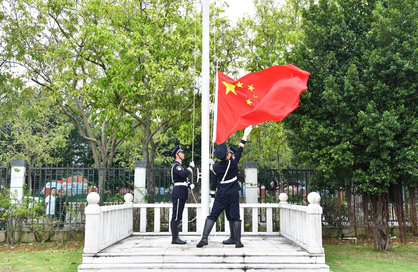 毕业典礼前,学院举行了隆重的升旗仪式。在高亢的《中华人民共和国国歌》声中,五星红旗冉冉升起,学院领导、各方队领队向国旗行举手礼,其他人员行注目礼,满怀对伟大祖国的美好祝愿。