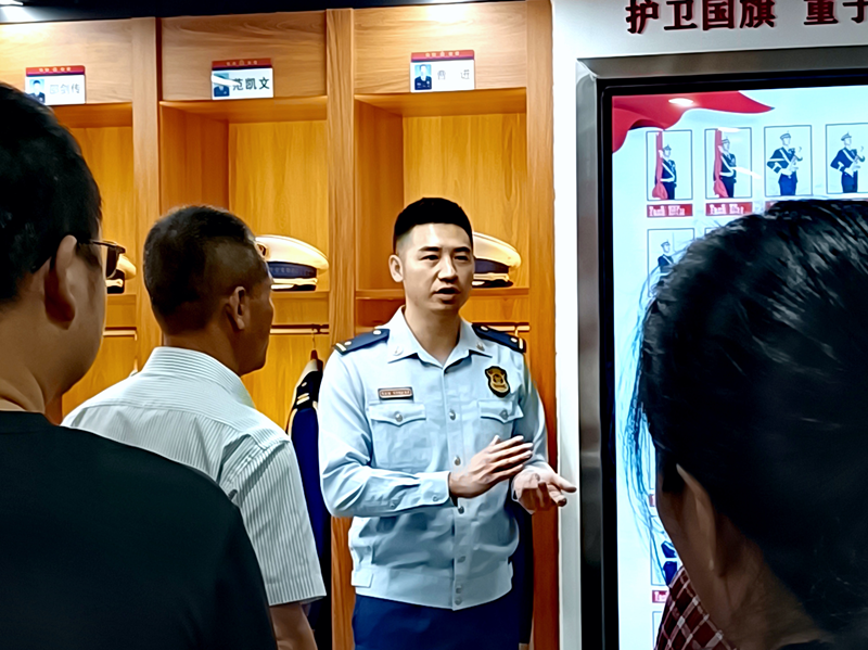 活动中,“最美退役军人”、消防救援站副站长张天水带领全体党员参观了礼服室,消防博物馆、图书馆、荣誉室等场馆,详细讲述国旗护卫队的历史沿革、光荣传统,以及消防救援站的工作内容和使命担当。