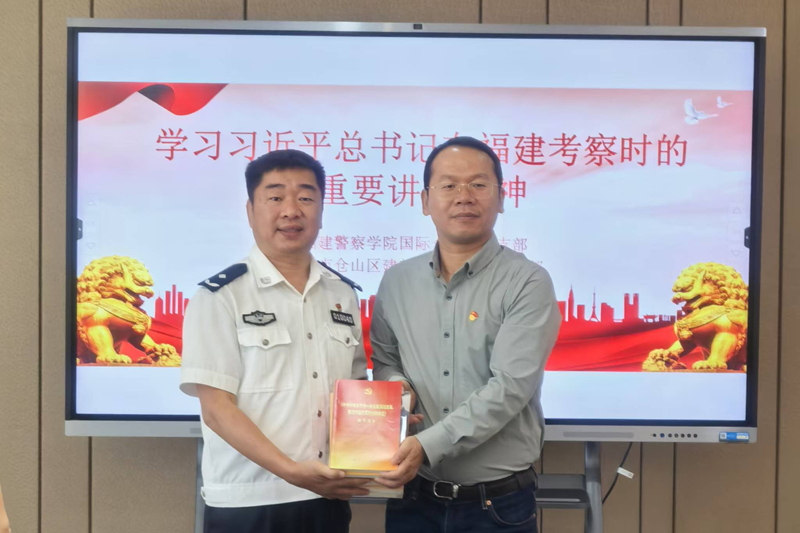 福湾社区党总支一行参观了忠诚教育展览馆、国际执法培训展览馆等地。就“学习贯彻习近平总书记在福建考察时的重要讲话精神”主题,国际合作处党支部书记王智强给全体党员上党课,全体党员进行深入的学习交流。