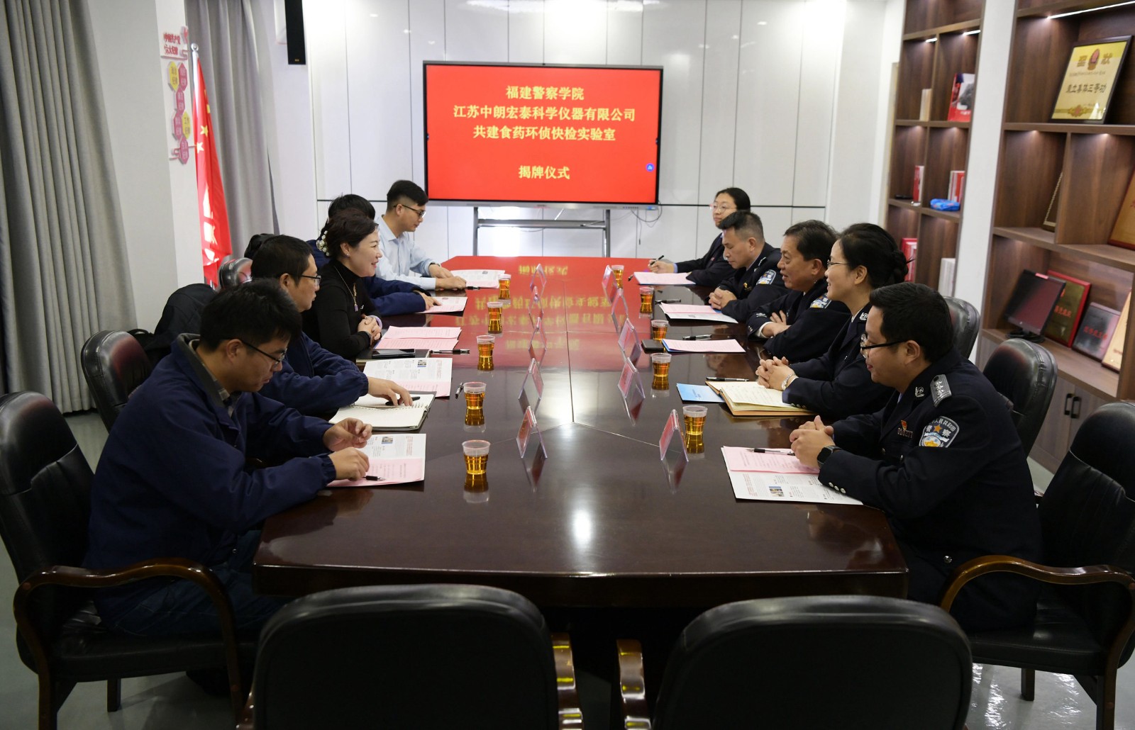 11月28日,beat365与江苏中朗宏泰科学仪器有限公司举行共建食药环侦快检实验室揭牌仪式。学院副院长陈万发、江苏中朗宏泰科学仪器有限公司总经理吴美萱为实验室共同揭牌,江苏中朗宏泰科学仪器有限公司代表,学院实验中心、刑事科学技术系教师参加。