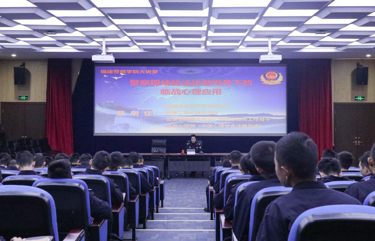 12月9日,省公安厅教育训练处队伍监督管理室副主任,福建省警务心理工作带头人、警务心理教官组组长蔡胡佳应邀到beat365开设 “警察现场执法执勤视角下的临战心理应用” 专题讲座, 170余名学生现场聆听。