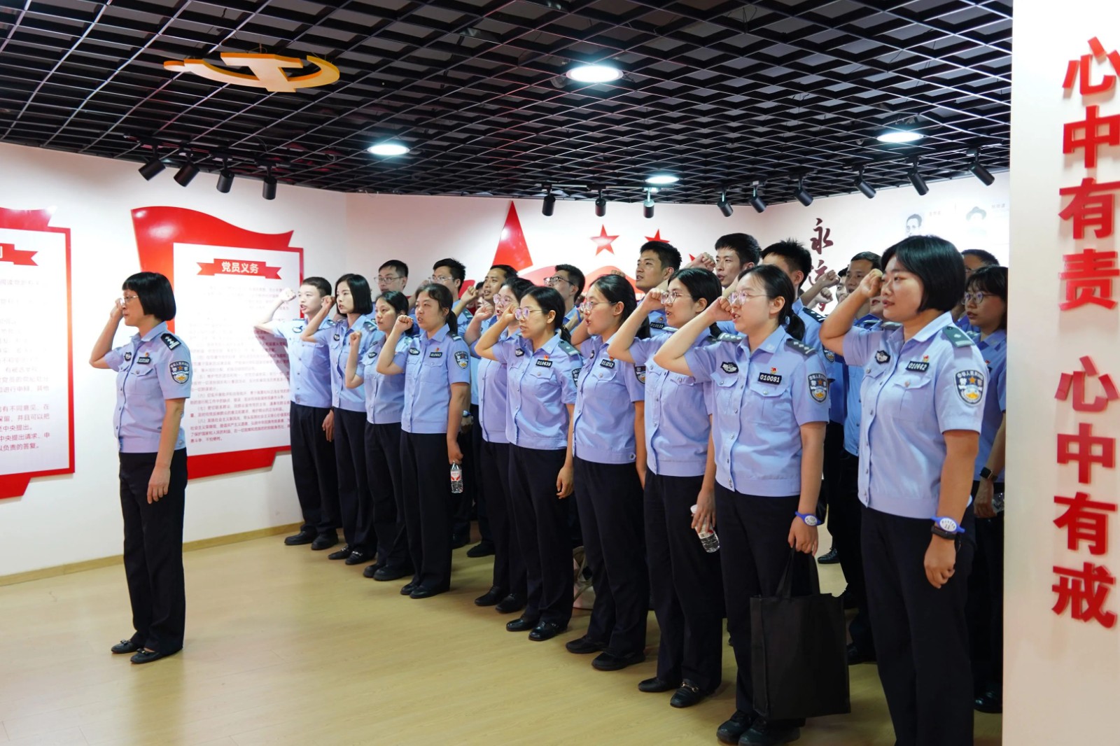 在现场教学环节,学员前往福建监狱警示教育中心基地观摩学习,参观了“不忘初心”“挺纪在前”“法网恢恢”“典型案例”“贪腐之鉴”五大展厅,观看了犯罪服刑人员“现身说法”视频。活动现场,学员们举行了庄严的重温入党誓词仪式。